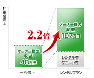 一括借上と比較して2.2倍以上の増収